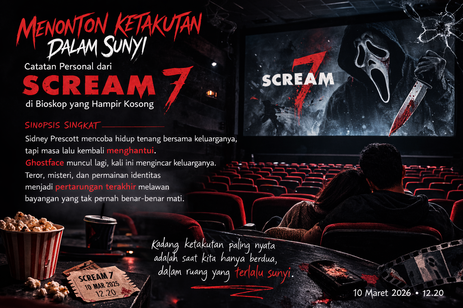 [Sumber gambar: AI] Penulis: Heri Isnaini Ada pengalaman menonton yang kadang tidak hanya meninggalkan kesan sebagai tontonan, tetapi juga sebagai peristiwa batin. Siang itu, 10 Maret 2026, pukul 12.20, di sebuah bioskop di Kota Bandung, saya duduk di sebuah ruang bioskop yang begitu luas, tetapi hampir kosong. Hanya ada saya dan istri. Kami berdua. Tidak […]