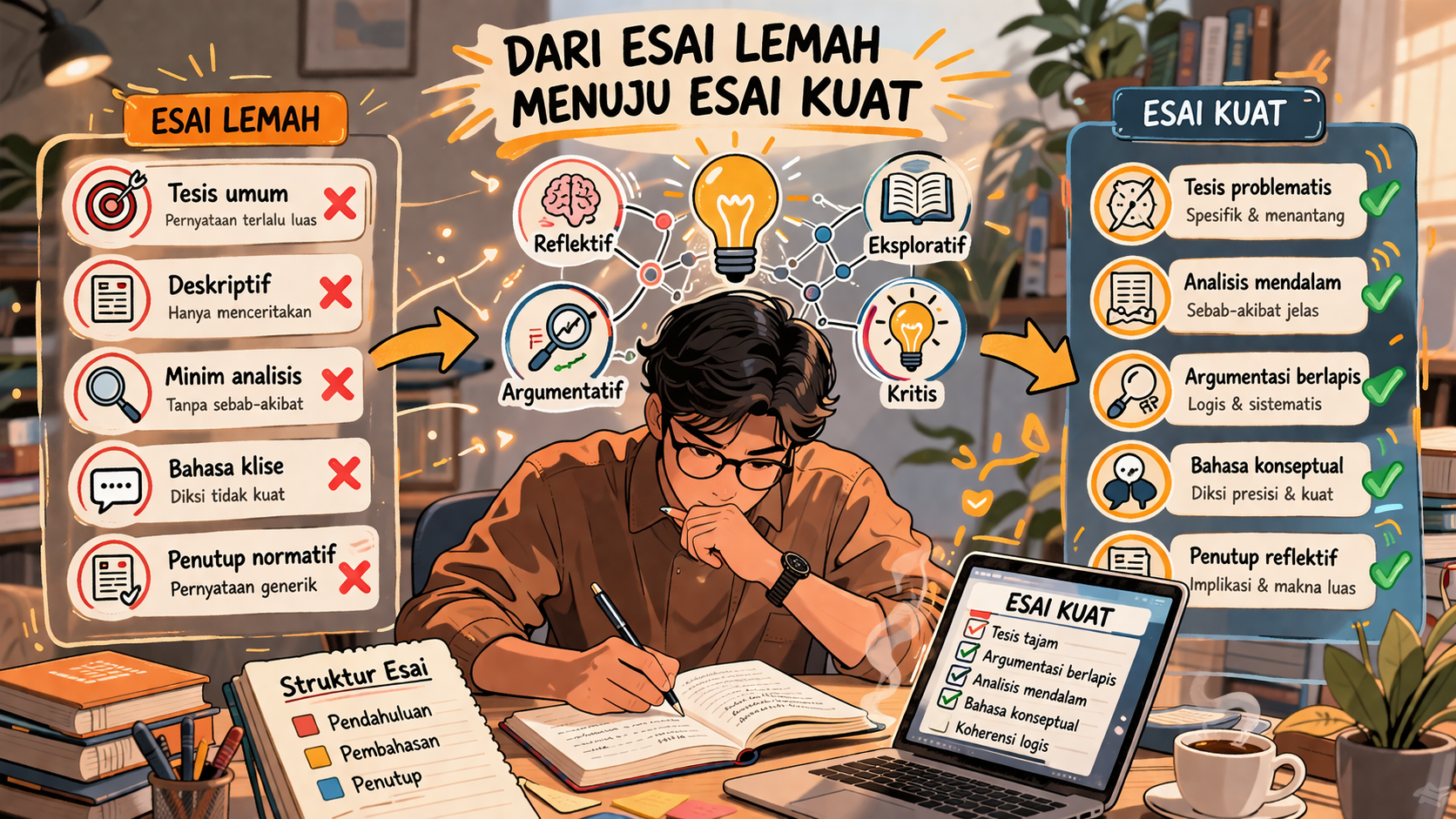 [Sumber gambar: AI] Penulis: Heri Isnaini Dalam lanskap penulisan, esai menempati posisi yang unik sekaligus strategis. Ia tidak sepenuhnya tunduk pada kekakuan tulisan ilmiah, tetapi juga tidak larut dalam kebebasan mutlak sastra. Esai berdiri di persimpangan: memadukan ketajaman argumentasi dengan kedalaman refleksi personal. Di titik inilah esai menjadi bukan sekadar medium ekspresi, melainkan instrumen berpikir. […]