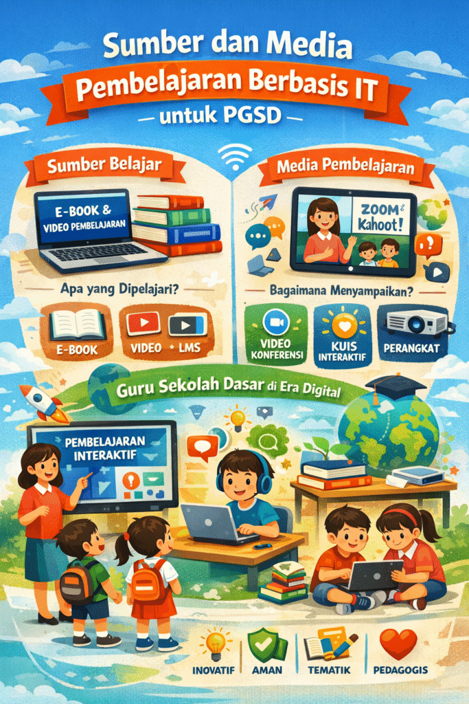 Bagi mahasiswa PGSD, penguasaan sumber dan media pembelajaran berbasis IT bukan sekadar kompetensi tambahan, melainkan kebutuhan profesional. Guru sekolah dasar masa kini harus mampu: